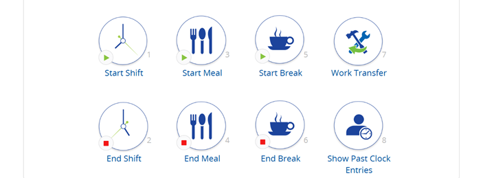 Use the table below as a quick reference when clocking in, taking breaks, or transferring locations: